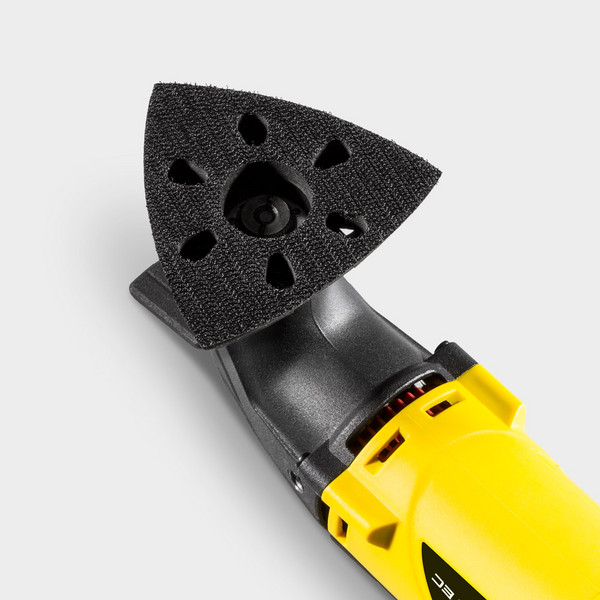 Ya en el volumen de suministro estándar se incluyen, entre otros, un disco de lijar en forma de delta con 18 papeles de lija para madera y metal, hojas de sierra de incisión especiales para madera, metal y cartón yeso, una hoja de sierra segmentada, así como un raspador.