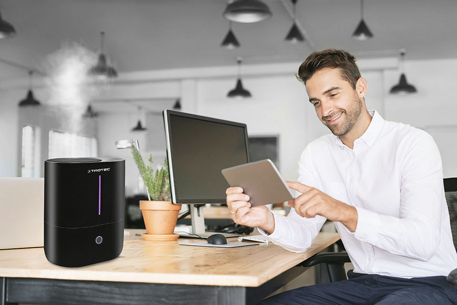 Que nos sintamos bien en nuestra piel, estemos concentrados y rindamos en el trabajo o durmamos toda la noche depende en gran medida del aire ambiental que nos rodea. Uno de los factores más decisivos para nuestro bienestar físico es la humedad relativa del aire. El aire ambiental demasiado seco, que solemos respirar durante el otoño o el invierno cuando la calefacción está encendida, puede favorecer la irritación de las mucosas y las enfermedades respiratorias como la tos y los resfriados. La piel se seca y el pelo se pone áspero.